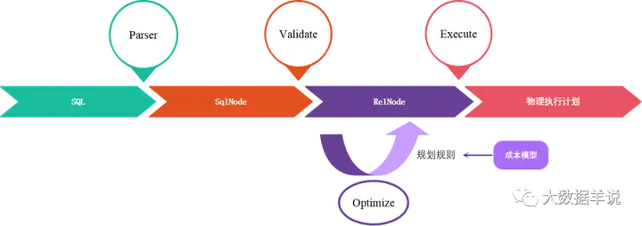 Notes:刚开始对其中的 SqlNode,RelNode 概念可能比较模糊。先理解整个流程,后续会详细介绍这些概念。