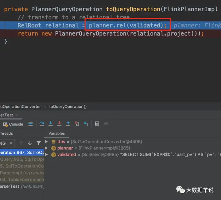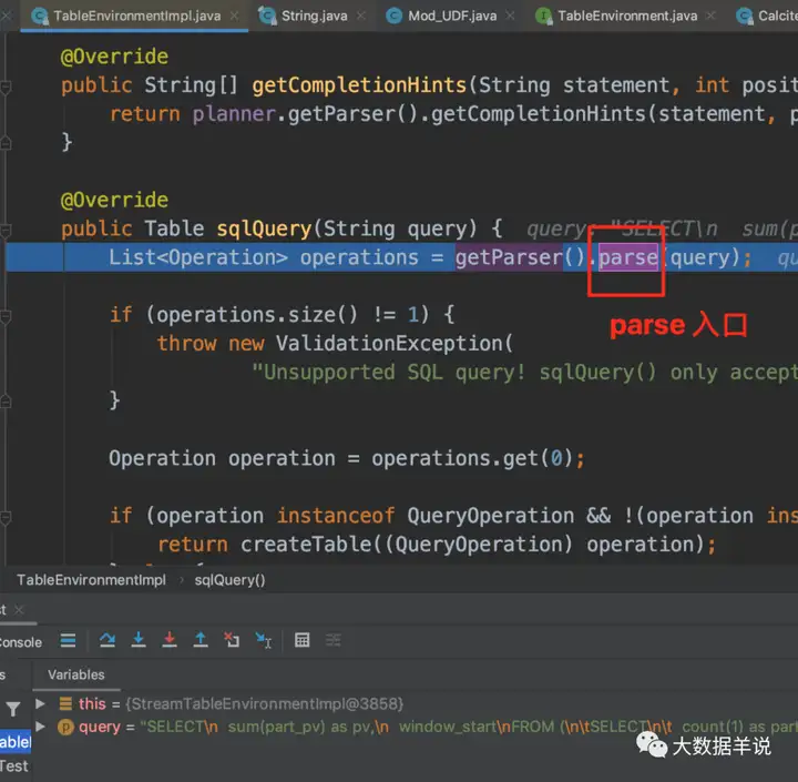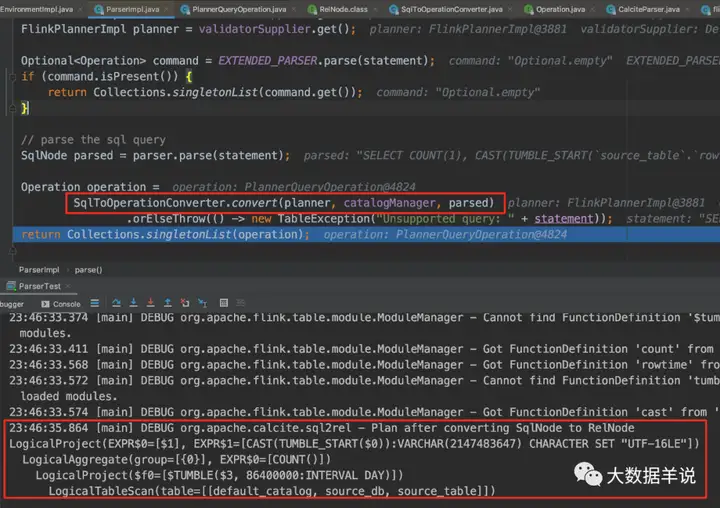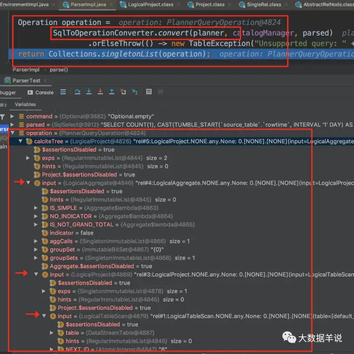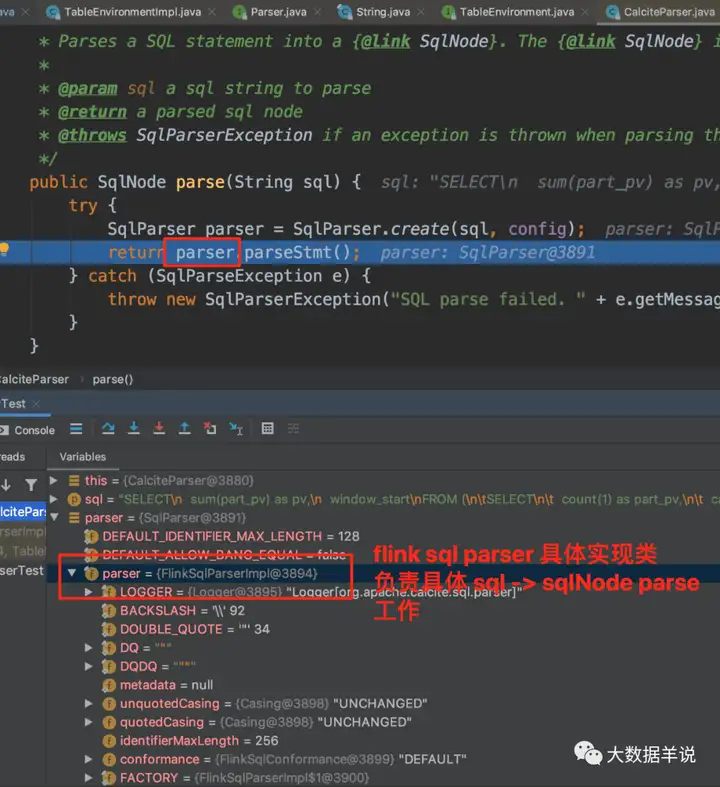 如上图可以看到具体的 Parser 就是 FlinkSqlParserImpl。