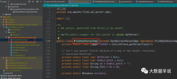 具体到 flink 中的实现,位于源码中的 flink-table.flink-sql-parser 模块(源码基于 flink 1.13.1)。