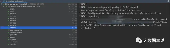 使用 maven-dependency-plugin 将 calcite 解压到 flink 项目 build 目录下。
