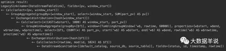 - 物理计划生成阶段:Logical Plan 转换为 Physical Plan(等同于 RelNode 转换成 DataSet\DataStream API)