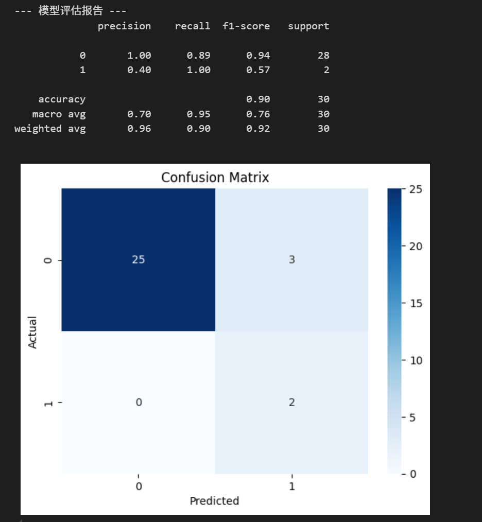 - 模型效果: 从评估报告看,模型对流失用户(标签1)的召回率(recall)为1.00,这意味着它成功识别出了测试集中所有的流失用户,达到了预警的目的。